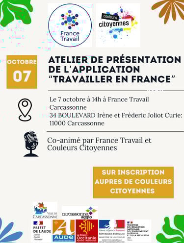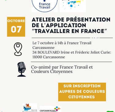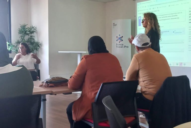 Le mardi 7 octobre, notre agente d'accueil était présente à France Travail pour animer conjointement un atelier sur l'application "Travailler en France".