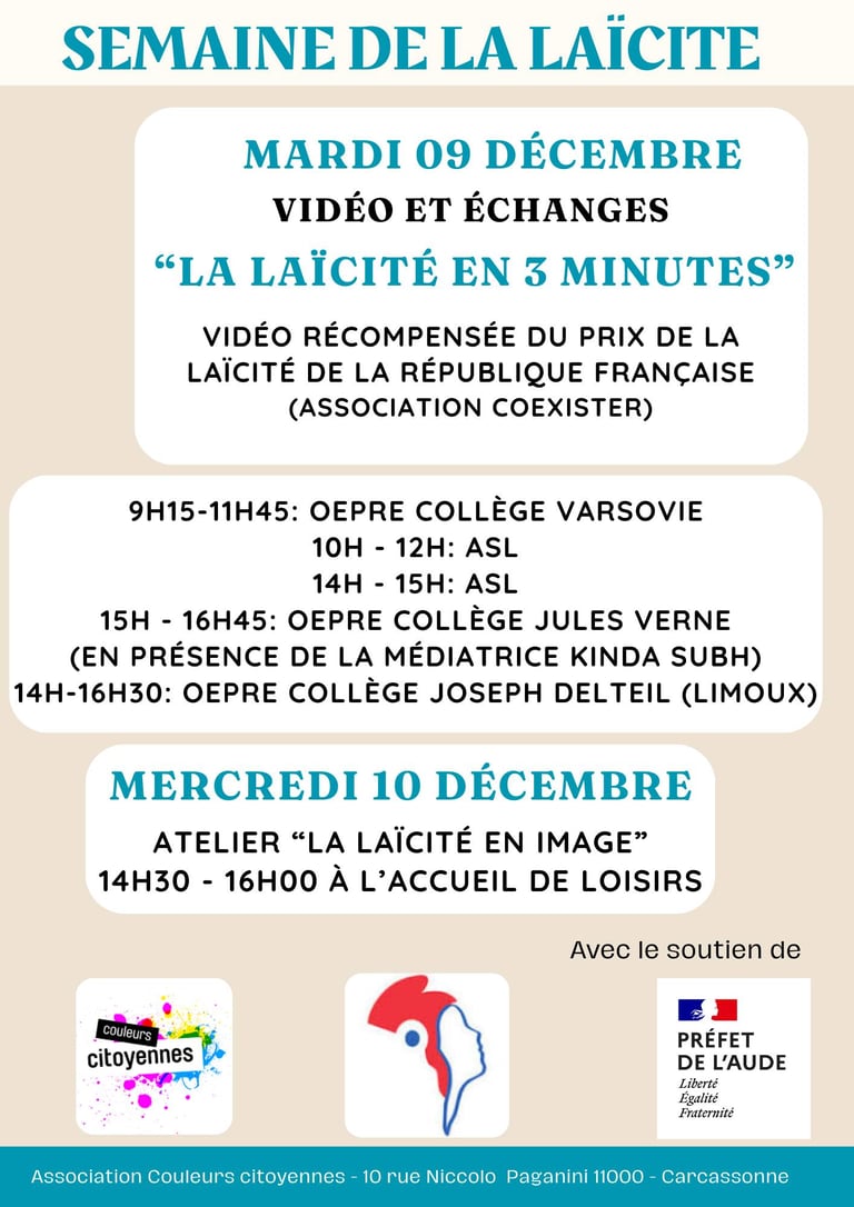 10 rue Niccolo Paganini 11000 Carcassonne Téléphone : 04 68 25 38 17 Email : association@couleurscitoyennes.fr